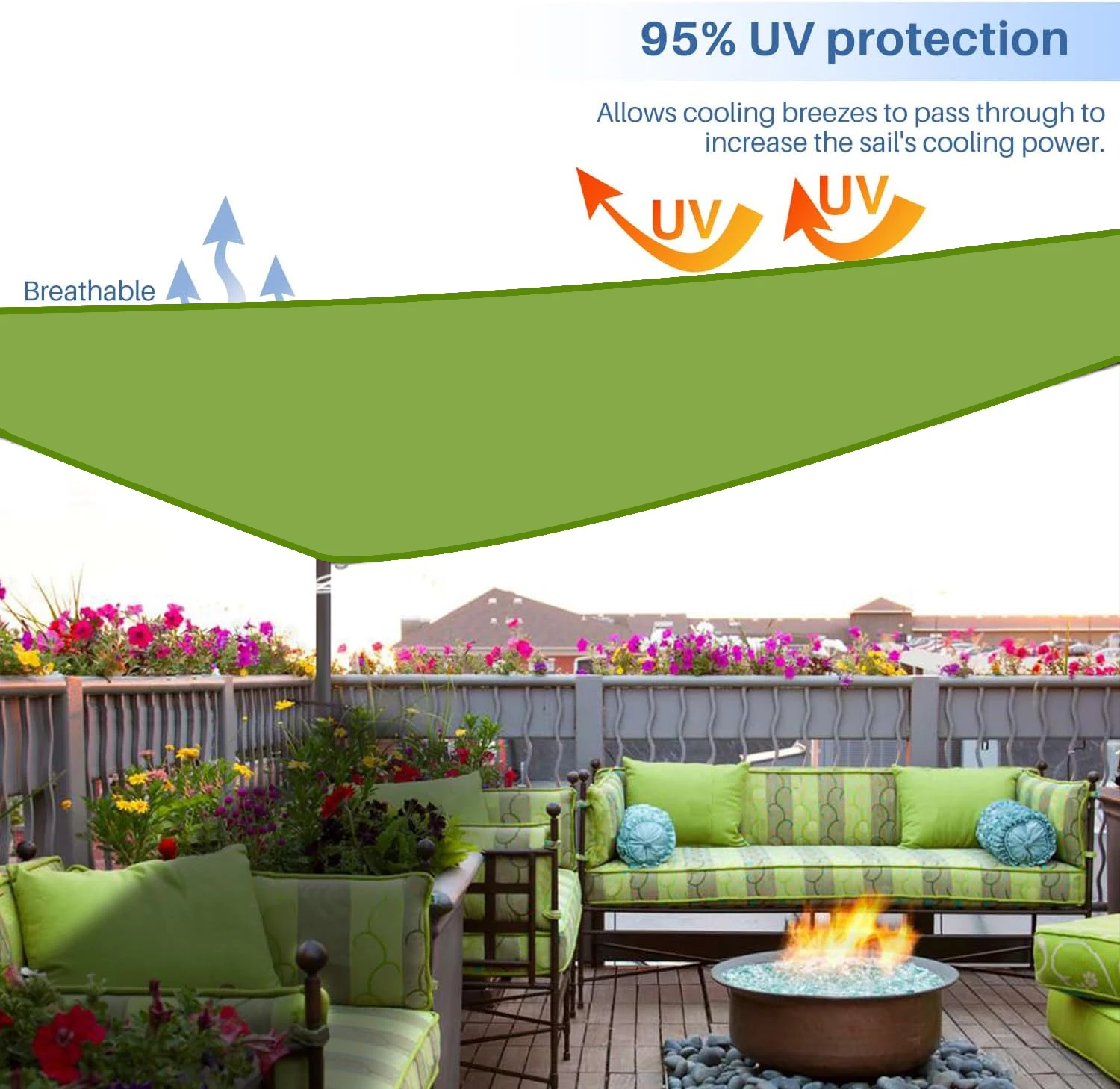 The triangular shape of the sail provides optimal coverage and shade for your outdoor space, making it a versatile addition to any balcony or courtyard.